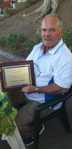 Él dimitió por razones de salud, cuando tuvo que someterse a una intervención quirúrgica de la cadera y nosotros hemos sido su relevo y consideramos que el gran mérito de que exista este Club se los debemos a Miguel Vega González, por esto hoy le nombramos presidente de honor.