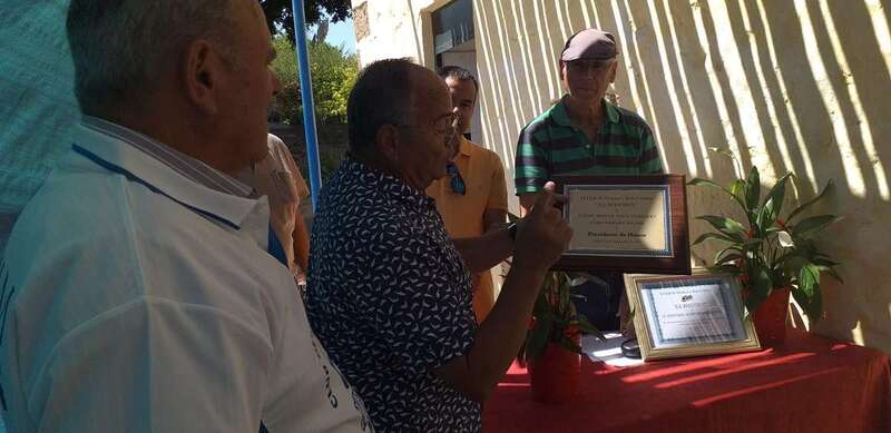 El Club Deportivo de Bola Canaria y Petanca, “La Avestruz”, ubicado en el Parque Urbano de San Juan de Telde, ayer congregó a su masa social para nombrar Presidente de Honor a su expresidente, D. José Miguel Vega González, entregarle una placa y brindar con él en una comida de confraternidad de los socios.
