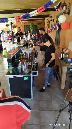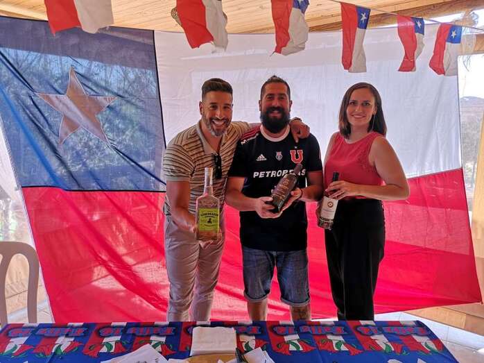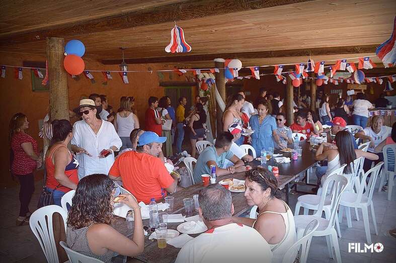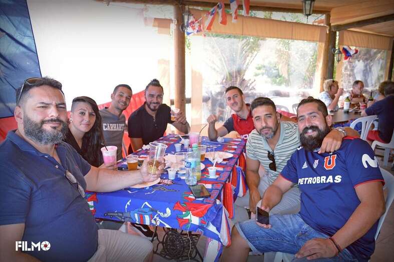 La celebración organizada por Guillermo Lecaros y Camila Vázquez, junto con la asociación Chilena Chile Sur, se festejó con convite de comida típica chilena como empanada de carne, pastel de choclo, etcétera, y bebidas propias del país andino como el terremoto y pisco sour, entre otras.