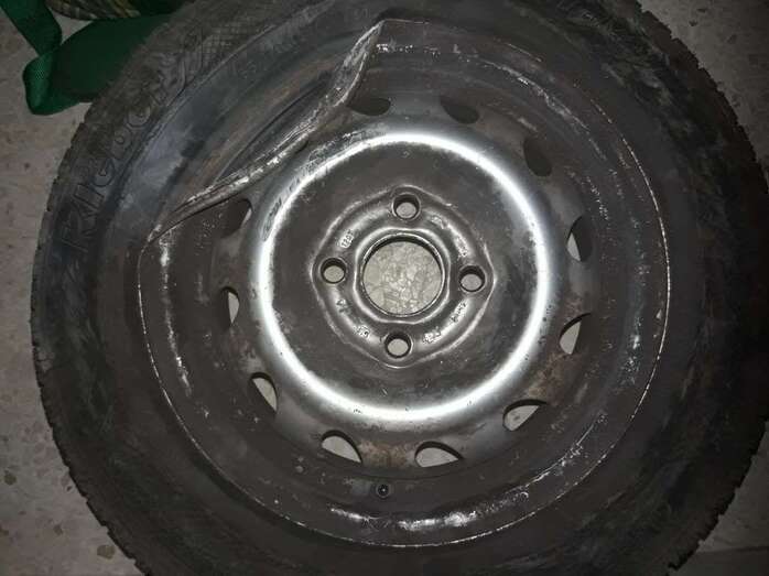 Estado en quedó la rueda de un vehículo (Foto TA) Estado en quedó la rueda de un vehículo (Foto TA)