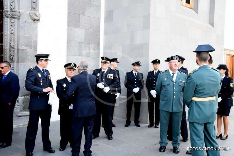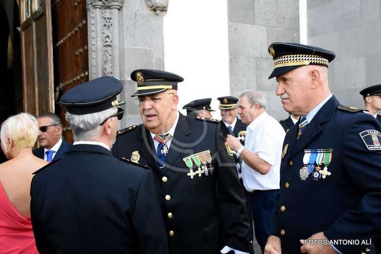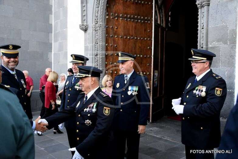 Telde.- El plantel de la Policía Nacional en Telde conmemoró este miércoles la festividad de los Santos Ángeles Custodios, patrones del Cuerpo con una misa en la Basílica de San Juan y una ceremonia de imposición y entrega de condecoraciones en la Ermita de San Pedro Mártir.