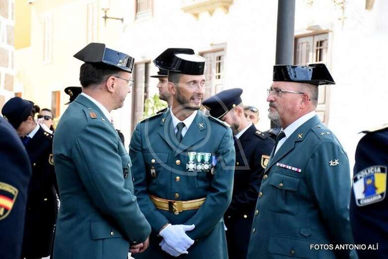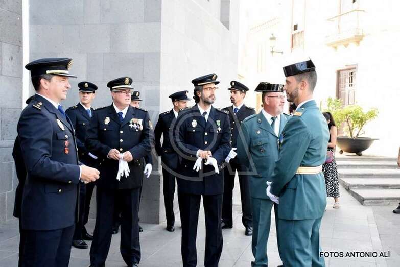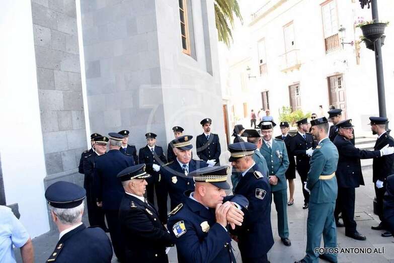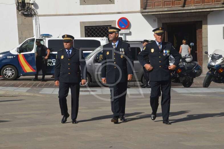 Con su comisario Jesús García Aller a la cabeza, la plantilla de la Policía Nacional de Telde estuvo arropada en una jornada tan especial por mandos y agentes de la Policía Local, Guardia Civil y militares del Ejército del Aire, así como por autoridades locales como el alcalde Héctor Suárez, el concejal de Seguridad, Agustín Arencibia, o los también ediles Juan Martel y Álvaro Monzón, además de representantes del tejido empresarial, social y educativo del municipio.