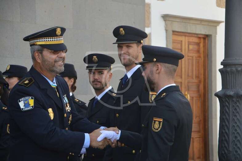 En primer lugar, la Cruz al Mérito Policial con distintivo blanco para los funcionarios de la Policía Nacional Aridane R.D., Daniel G.B., Ricardo L.M., Cristo P.G. y Joaquín R.G., y también para el agente de la Policía Local de Telde José Juan Florido Sánchez. (Por motivos relacionados con la protección de datos la propia Policía Nacional solo ha autorizado la reproducción de las iniciales de sus agentes condecorados).
