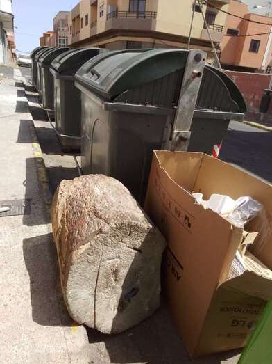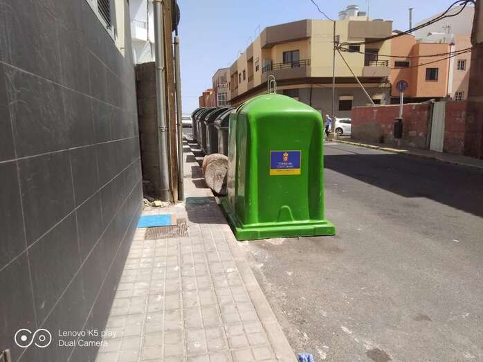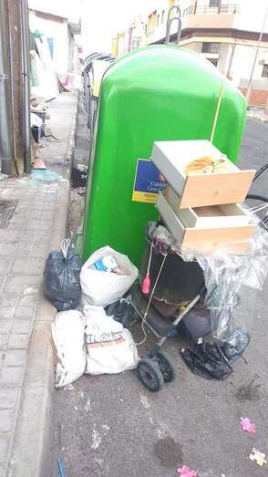 La acumulación de basura y la proximidad de unos contenedores impide incluso que los peatones puedan transitar por la acera, asegura. Han avisado al Ayuntamiento de Telde, pero por ahora sus quejas no han tenido respuesta.