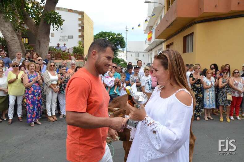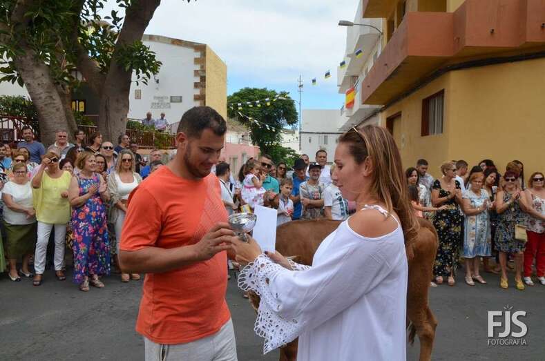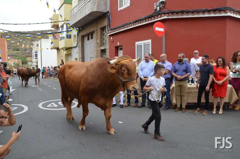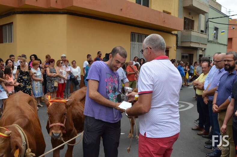 Tras la misa oficiada por el nuevo párroco de la zona, Francisco Suárez, acompañado de Fernando Santana Báez, titular de la Parroquia de Las Nieves (Lomo Magullo), tuvo lugar el desfile del ganado delante de los tronos de la Virgen del Pilar y San Hermenegildo, que luego saldrían en procesión por las calles del barrio, con el acompañamiento de la Banda Municipal de Música.