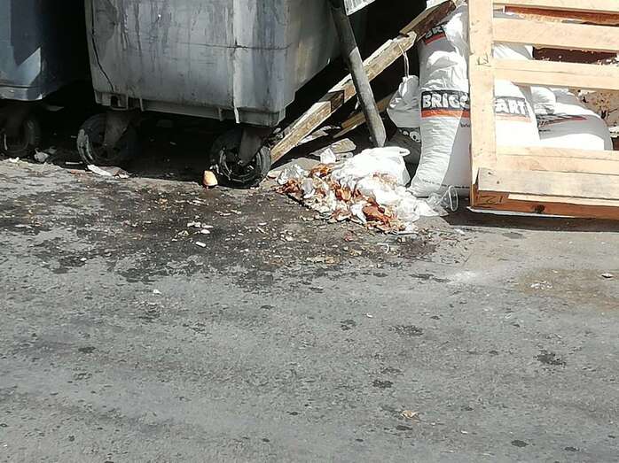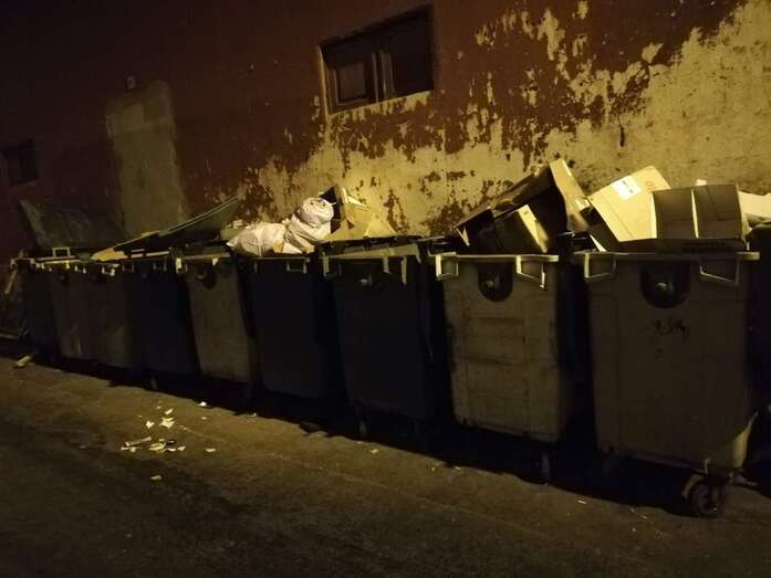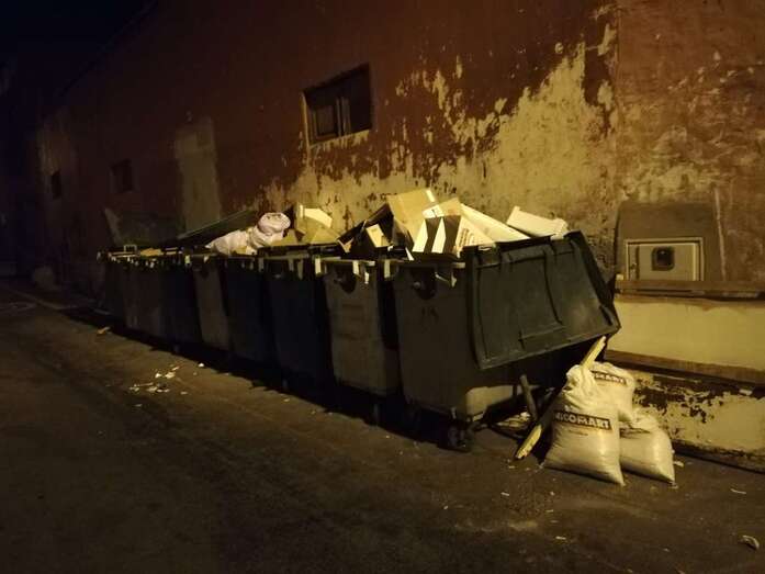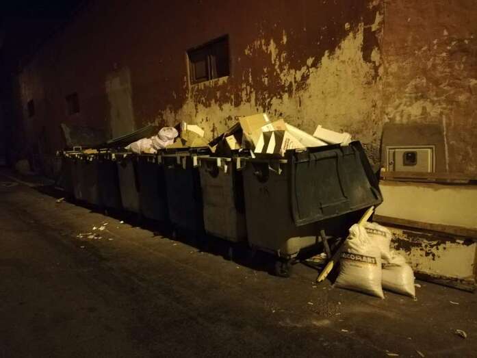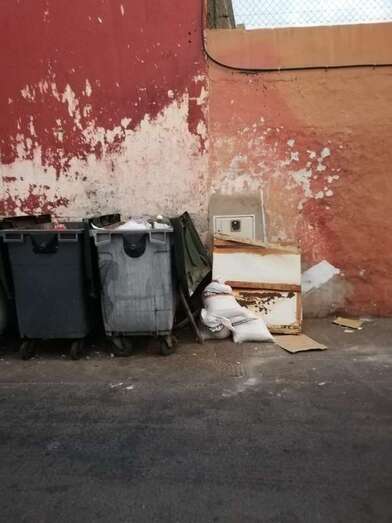 Explican que en este punto de contenerización se depositan plásticos, cartones o incluso maderas, y también restos orgánicos de negocios de la zona. Y que por la noche hay personas que rebuscan en los recipientes y tiran los residuos al suelo, lo que favorece la aparición de malos olores, insectos y ratones y gatos callejeros.