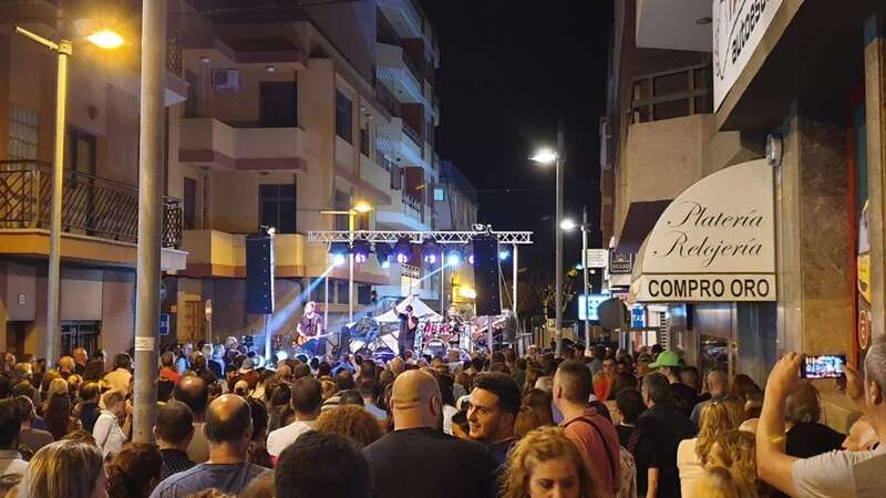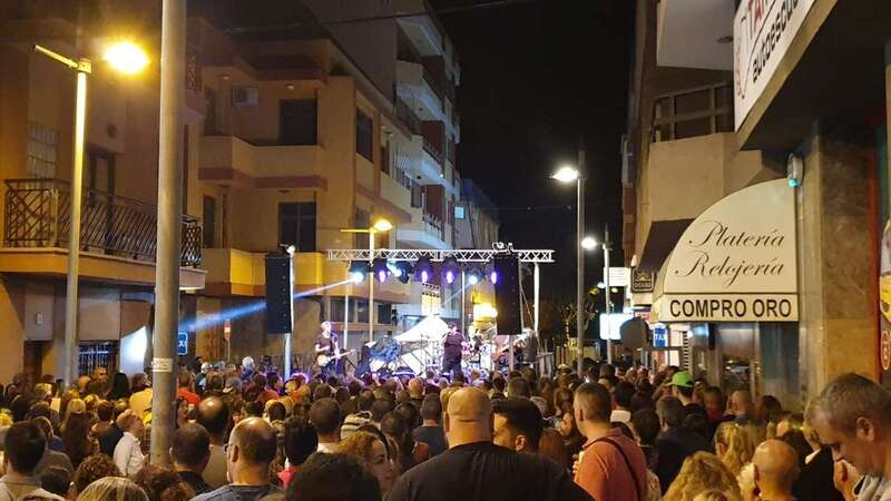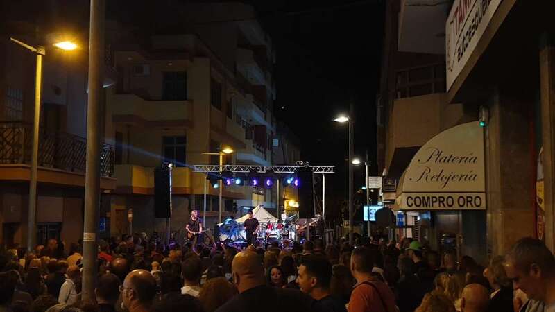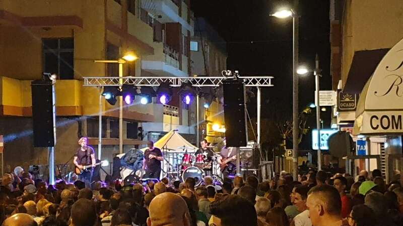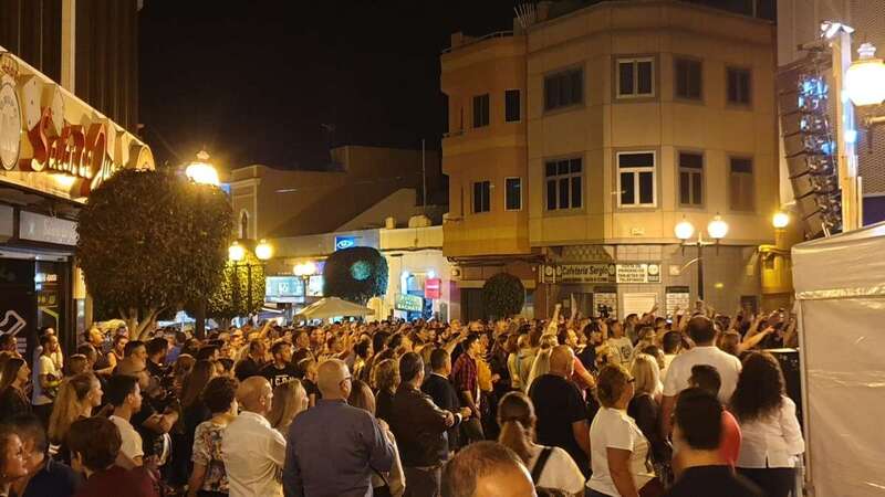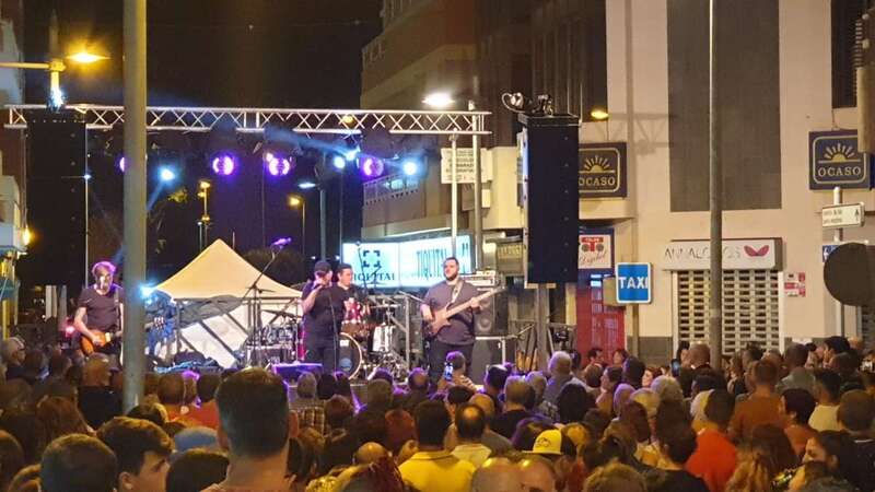 Tras las actividades matutinas y de primera hora de la tarde destinadas especialmente a los menores y sus familias, esta noche le tocó el turno a los conciertos, que comenzó pasadas las 20 horas con la banda teldense Los Sarantontones a las 20 horas en un escenario ubicado en la Avenida de la Constitución, a la altura del cruce con las calles Doctor Gutiérrez Armario y Argentina.