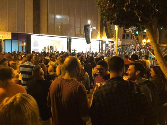 Telde.- El evento Telde cambia la hora ha llenado esta noche de público la zona comercial de Los Llanos, donde se han dado cita miles de personas para disfrutar de los conciertos al aire libre, de los descuentos de las tiendas y de la variada oferta de los negocios de restauración. TA avanza imágenes.