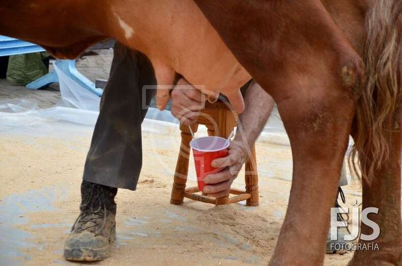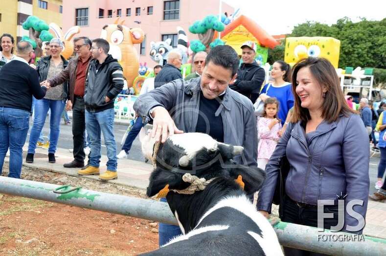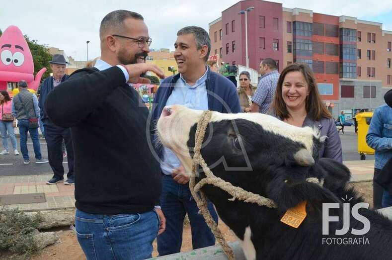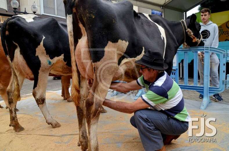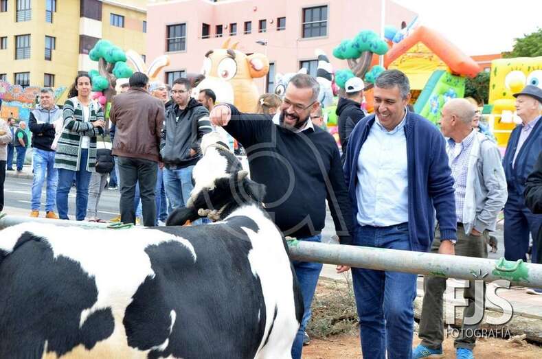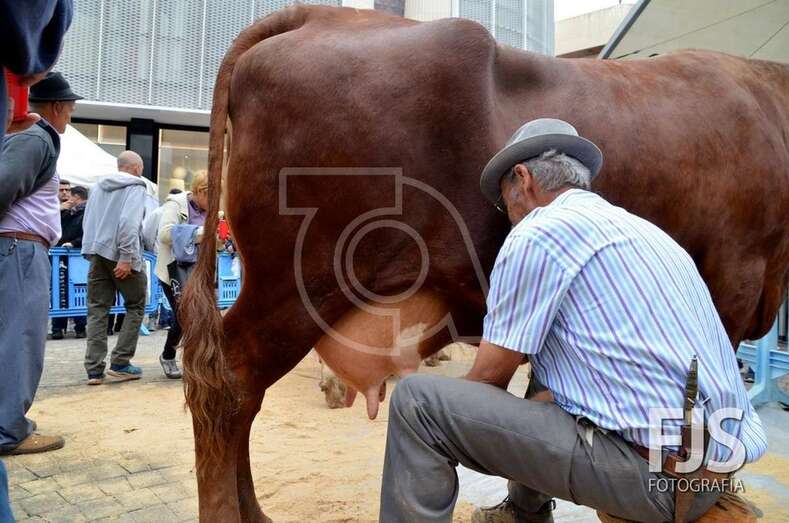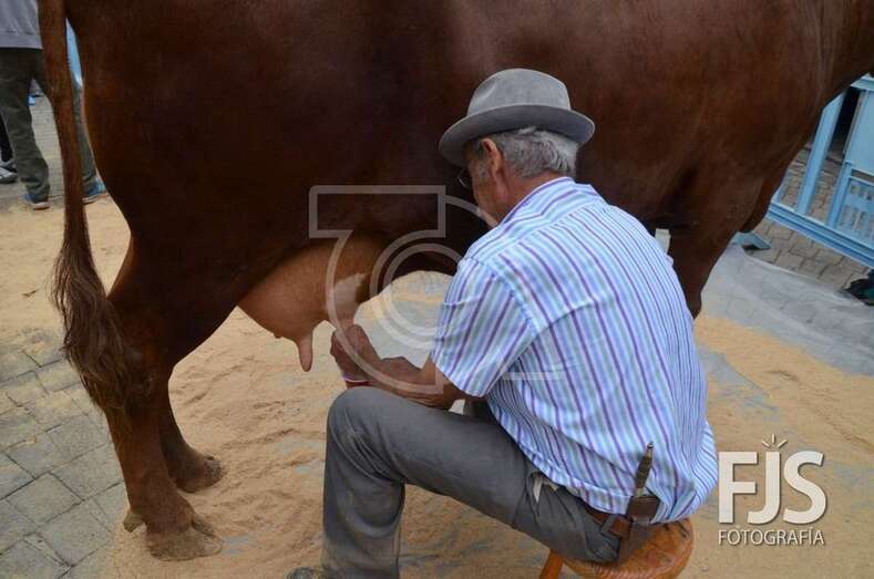 El edil de Cultura, Juan Martel, ordeña una de las vacas (Foto Francisco Javier Santana) TELDEACTUALIDAD