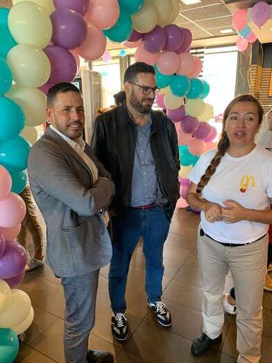 Telde.- El alcalde Héctor Suárez y el concejal de Servicios Sociales, Diego Ojeda, colaboraron este viernes con la celebración del evento Mc Happy Day en el restaurante Mc Donald’s del Parque Comercial La Mareta, en Telde.