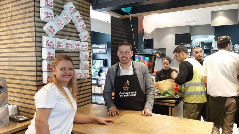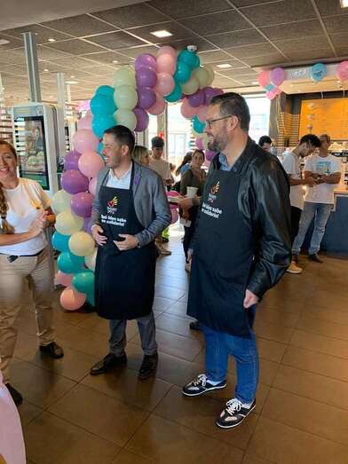 El alcalde Héctor Suárez y el edil de Servicios Sociales, Diego Ojeda, participaron este viernes en el evento solidario celebrado en el restuarante Mc Donald's del Parque Comercial La Mareta