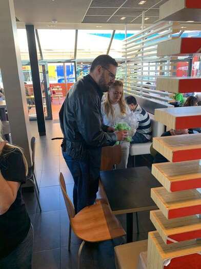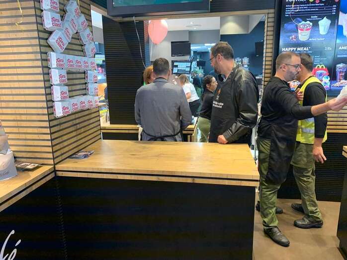 El alcalde Héctor Suárez y Diego Ojeda, en el restaurante Mc Donald El alcalde Héctor Suárez y Diego Ojeda, en el restaurante Mc Donald