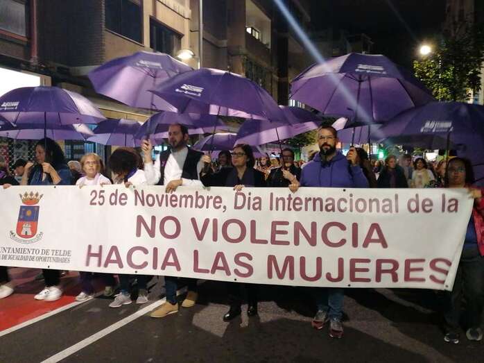 Telde.- Decenas de ciudadanos, convocados por la Concejalía de Políticas de Igualdad del Ayuntamiento municipal que dirige el edil Jonay López, acudieron en la tarde de este lunes a la manifestación convocada por la Red Feminista de Gran Canaria con motivo del Día Internacional por la Eliminación de la Violencia contra la Mujer que se celebra hoy, 25 de noviembre.