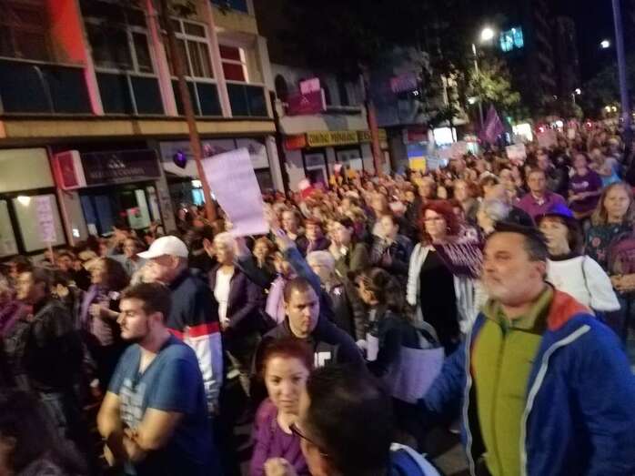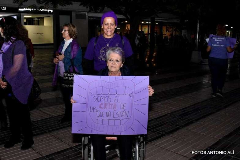 Vestidos de luto y con luces violetas han reivindicado “ni una menos, ni una muerta más”, mensaje que se ha unido a otros en pancartas y carteles como ”todas sumamos, todas actuamos”, “los derechos de las mujeres ni se compran ni se venden”, “la lucha es diaria y permanente”, “ni un paso atrás”, o “somos la voz de las que no están”, entre otras frases.