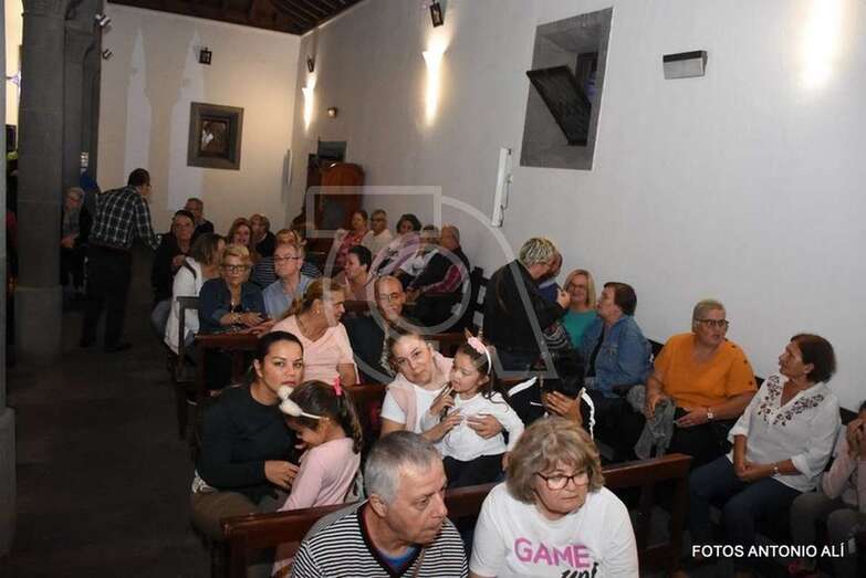 Mirando al pasado, el pregonero también hizo un repaso por la historia de un barrio que tuvo un papel importante dentro de Telde durante la etapa prehispánica, como primer núcleo poblado. Mentó alguno de sus enclaves y también debujó una Jinámar de antaño, llena de plataneras y con paisanos sacando arena en mulos de carga de la playa de Bocabarranco mientras otros cogían mejillones, lapas, Burgos y hasta algún que otro pulpo.