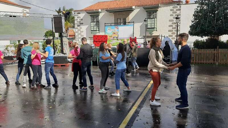 Aprovechando las pocas treguas que el mal tiempo concedió, se desarrollaron algunas de las actividades, dinámicas de cohesión y talleres de baile previstos, con Rafaelillo Clown de maestro de ceremonias e intentando animar el ambiente.