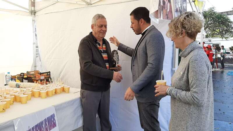 Pasado el mediodía, el alcalde Héctor Suárez (Coalición Canaria) visitó la Feria, y junto a la edila Auri Saavedra recorrió una a una todas las carpas, algunas comprometidas por el embate del viento.