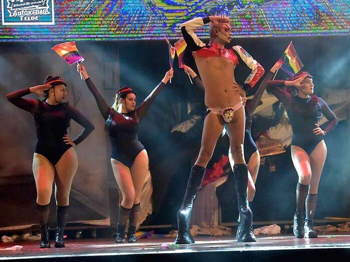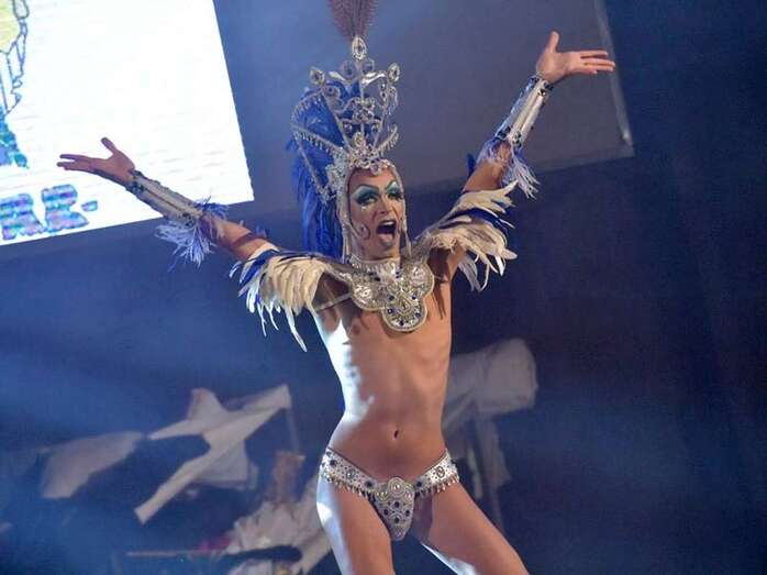 El teldense Rubén Dizá hizo las veces de presentador de este animado y pícaro certamen con un recinto público lleno de personas que esperaban con ansias ver en acción a estos drags sobre las vertiginosas plataformas de más de 10 centímetros de altura y que, uno a uno, fueron poniendo en escena sus fantasías y coreografías sobre un aguado escenario.