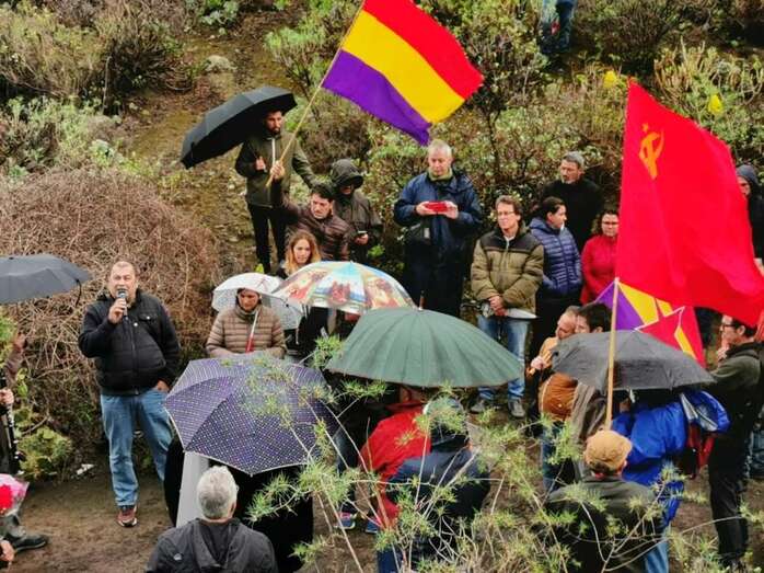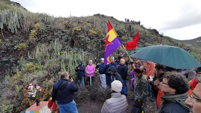 Telde.- La voluntad de Domingo Valencia, el primer condenado a muerte menor de edad por Franco, se cumplió con un emotivo acto en el que familiares y compañeros depositaron sus restos en esta fosa.