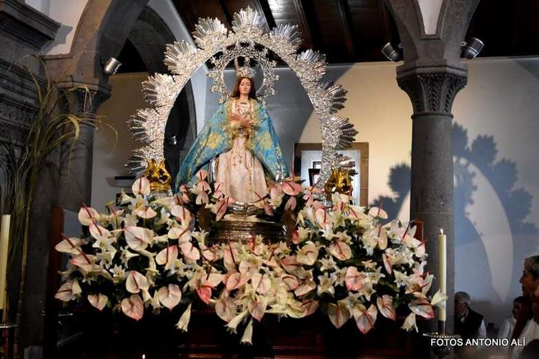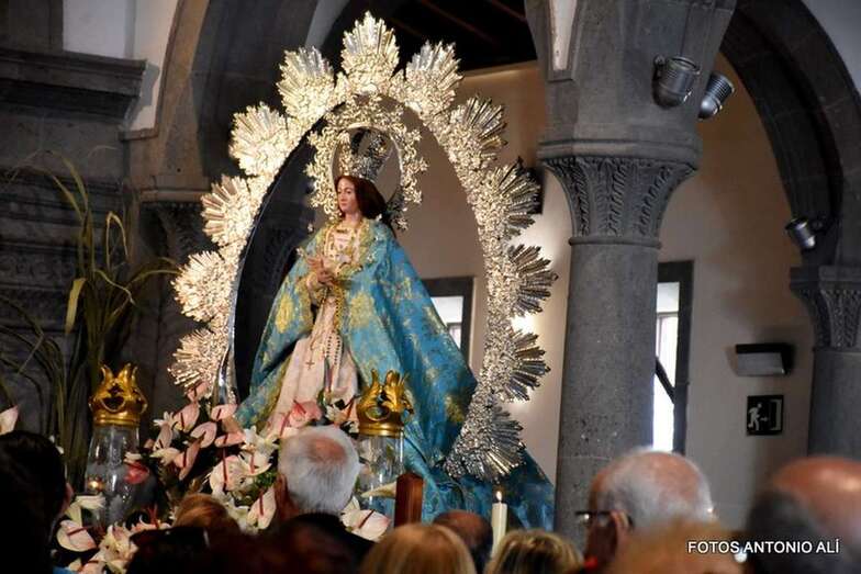 Telde.- El casco antiguo de Jinámar veneró este domingo a su patrona, la Inmaculada Concepción , durante la misa y posterior procesión religiosa que recorrió la arteria principal de este enclave poblacional de Telde, hoy convertido en un reguero de personas, unas 7.000 personas, según fuentes de la Policía Local.
