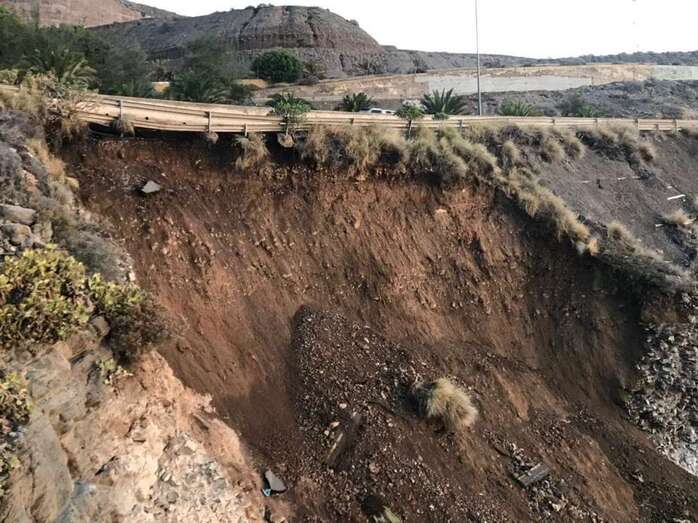 Un derrumbe bajo la GC-1 obligó al cierre del carril central a la entrada de la capital