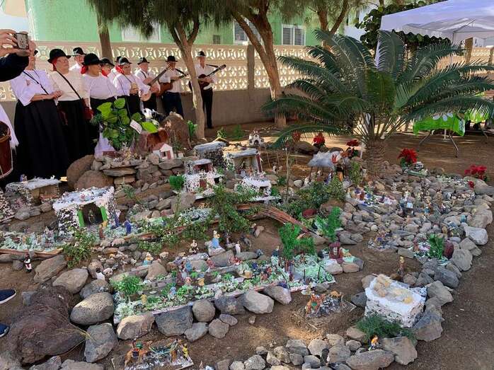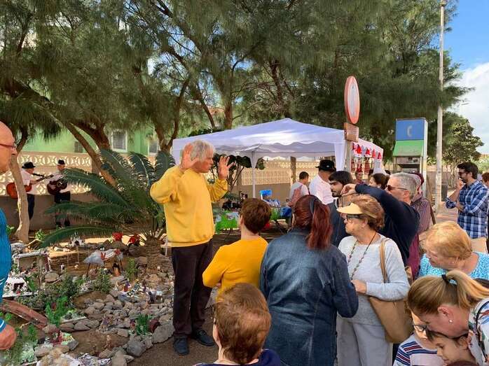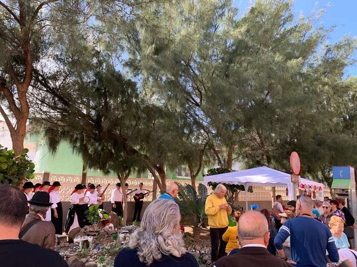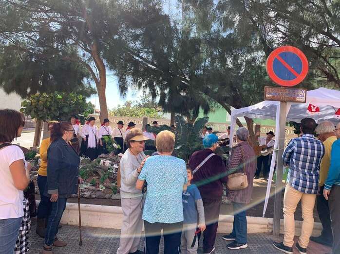 El sacerdote Fernando Báez, titular de la Parroquia de Lomo Magullo, dirigió unas palabras a los asistentes y echó en falta representación del Ayuntamiento de Telde en el acto que tuvo lugar a partir de las 12 del mediodía y que estuvo amenizado por villancicos interpretados por la Parranda La Sal.