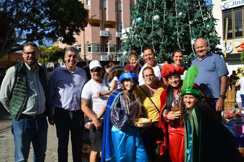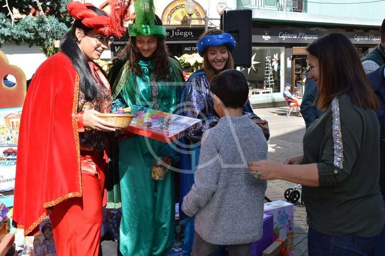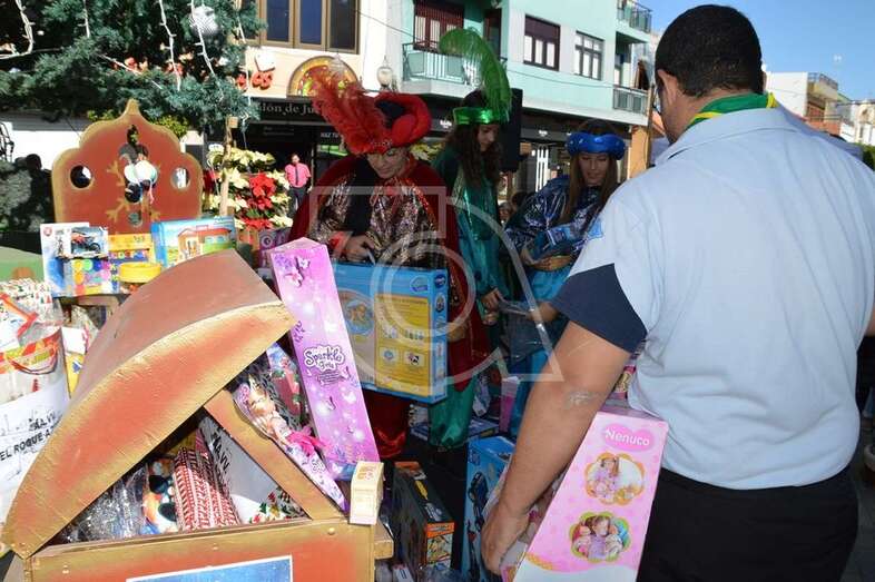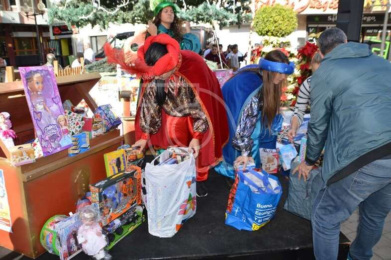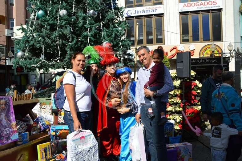 Telde.- El alcalde de Telde, Héctor Suárez, y el concejal de Servicios Sociales, Diego Ojeda, se acercaron este viernes a la plaza de San Gregorio para hacer entrega de sus regalos en el marco de la campaña de recogida de juguetes Juegos y juguetes: + que Reyes, que un año más realiza el Ayuntamiento con la colaboración de Casa Galicia para que todos los menores del municipio puedan recibir regalos en estas fechas.