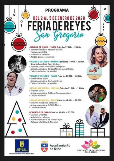 Telde.- La Feria de Reyes de Telde, que abrirá sus puertas del 2 al 5 de enero en el casco de Los Llanos, ofrecerá todo un programa paralelo de actuaciones artísticas y espectáculos musicales. Actividades organizadas por el Ayuntamiento de Telde y la Asociación de Empresarios de la Zona Comercial Abierta y que están financiadas en su totalidad por el Cabildo de Gran Canaria.