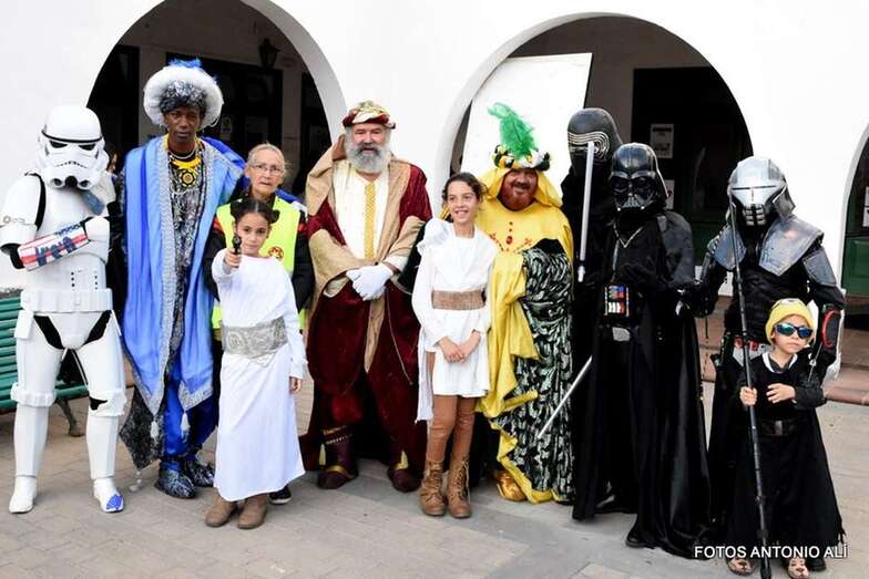 Los Reyes Magos llegaron este mediodía a Telde en helicóptero desde Oriente cargados de regalos. Aterrizaron en el Estadio Municipal Pablo Hernández, donde fueron recibidos por cientos de niños y las autoridades locales. Previamente, sus pajes anunciaron su llegada con una comitiva que recorrió buena parte del municipio.