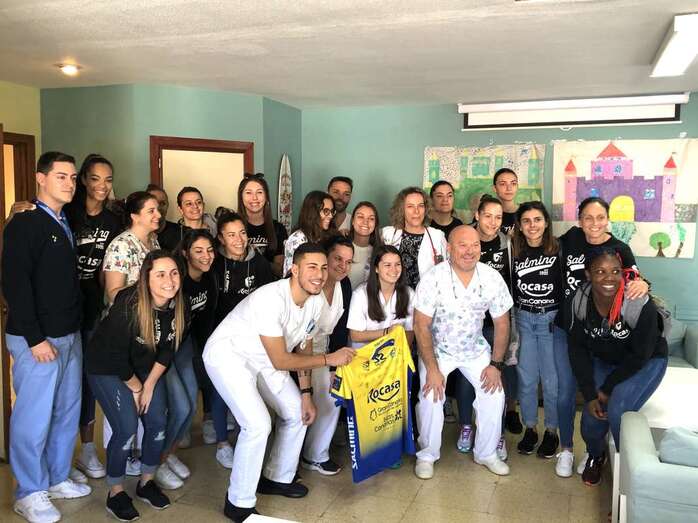 Las jugadoras del primer equipo del Rocasa Gran Canaria cambiaron por unas horas la cancha del Pabellón Antonio Moreno por los pasillos del Hospital Insular Materno-Infantil de Las Palmas de Gran Canaria, en una visita de lo más emotiva en la que hicieron entrega de sus regalos de Reyes a 50 niños y niñas internos en el citado centro hospitalario