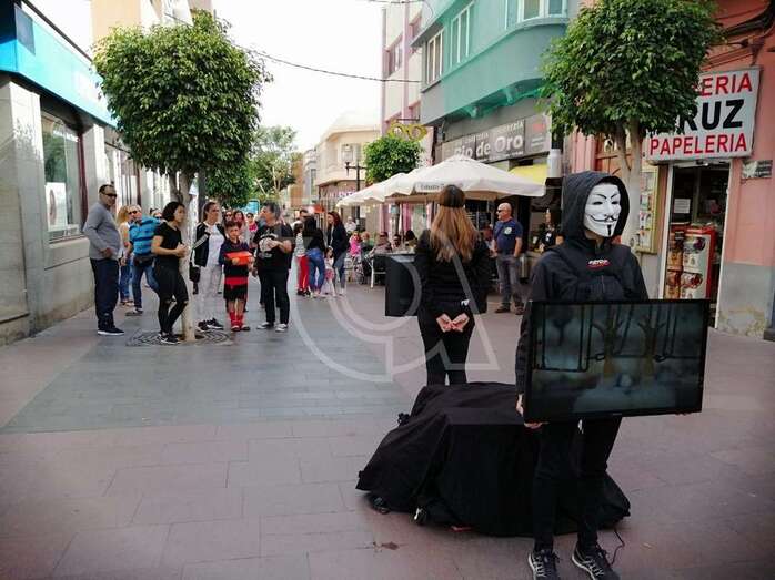 Telde.- El colectivo animalista Anonymous for the Voiceless está este sábado en la Avenida de La Constitución llevando a cabo una performance para sensibilizar contra el maltrato y sacrificio animal.