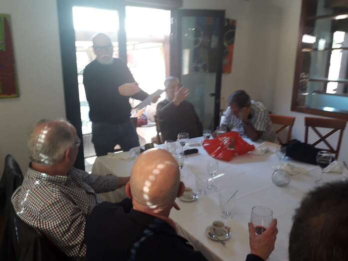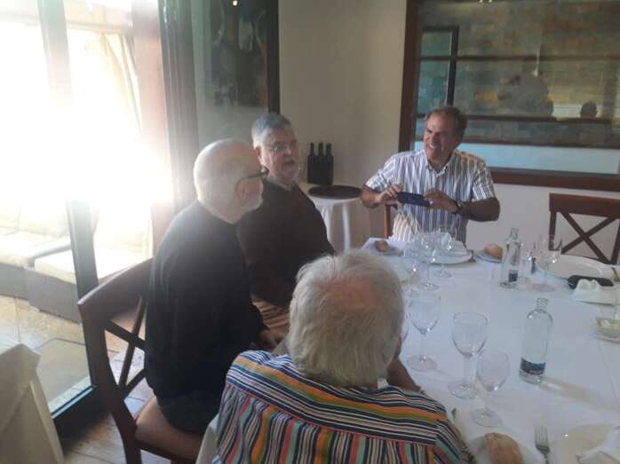 El entrañable encuentro tuvo lugar en el restaurante El Caserón del Cortijo, en Telde,  y Victoriano Falcón no pudo ocultar su alegría por esta muestra de cariño y afecto de sus amigos, muchos de ellos de su infancia y juventud.