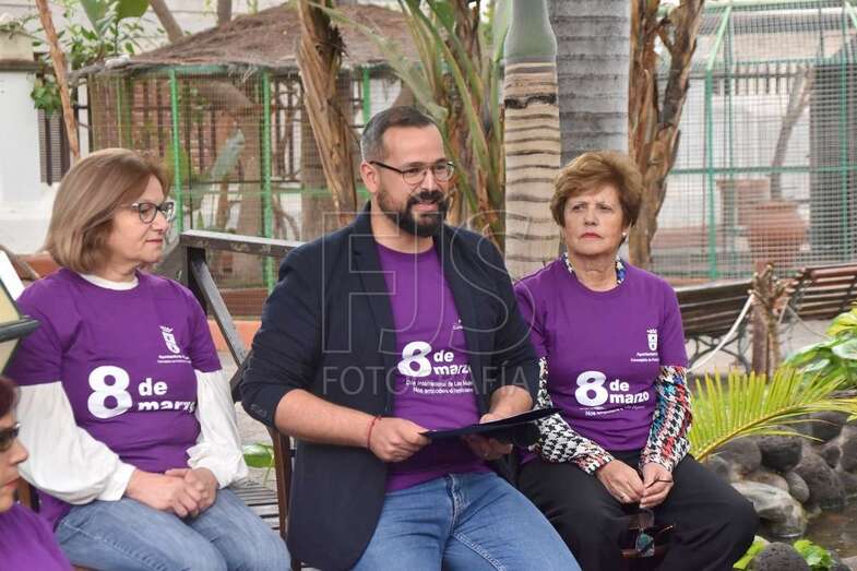 El pintoresco parque de Santa Rosalía, más conocido como el de Lulú, fue el escenario elegido por la Concejalía que comanda el edil nacionalista Jonay López (Coalición Canaria) para dar a conocer el calendario de actos previstos con motivo de este 8 de marzo. Una programación que el edil detalló arropado por representantes del tejido feminista y trabajadoras municipales, y que se basa en tres pilares: reivindicación, educación y transversalidad.