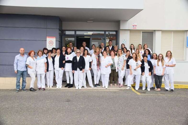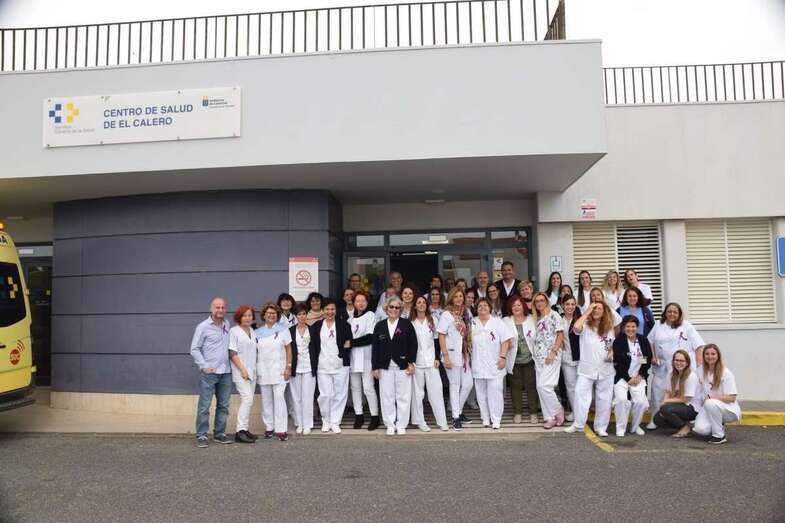 La plantilla se hizo este viernes una foto para recordar este doble aniversario a las puertas del Centro de Salud. Algunos trabajadores portaban un lazo violeta sumándose así a la conmemoración del 8 de Marzo, Día Internacional de las Mujeres.