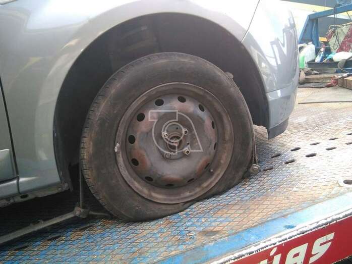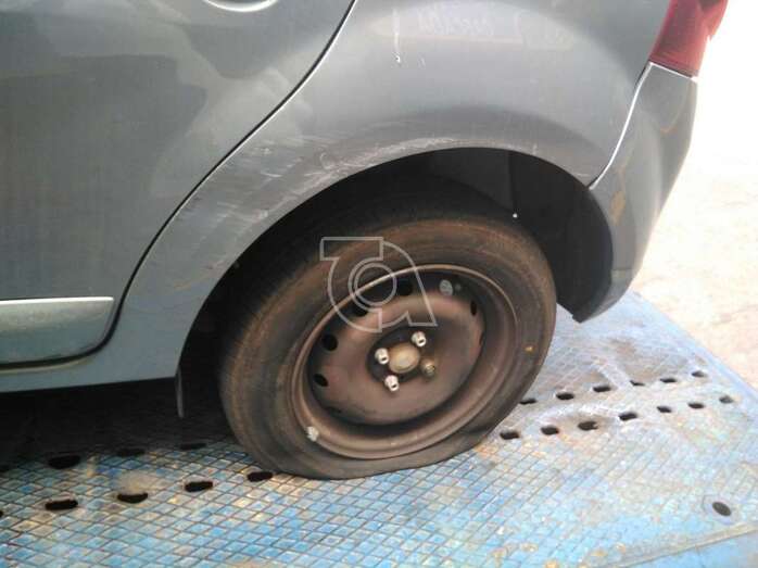 Una de las ruedas pinchadas (Foto TA) Una de las ruedas pinchadas (Foto TA)
