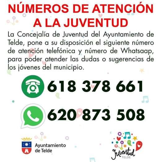 Por un lado, una línea telefónica a la que la población puede llamar (618.378.661), por otro un número para comunicarse vía WhatsApp (620.873.508), y por último un correo electrónico (oficinajuventud@telde.es).