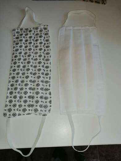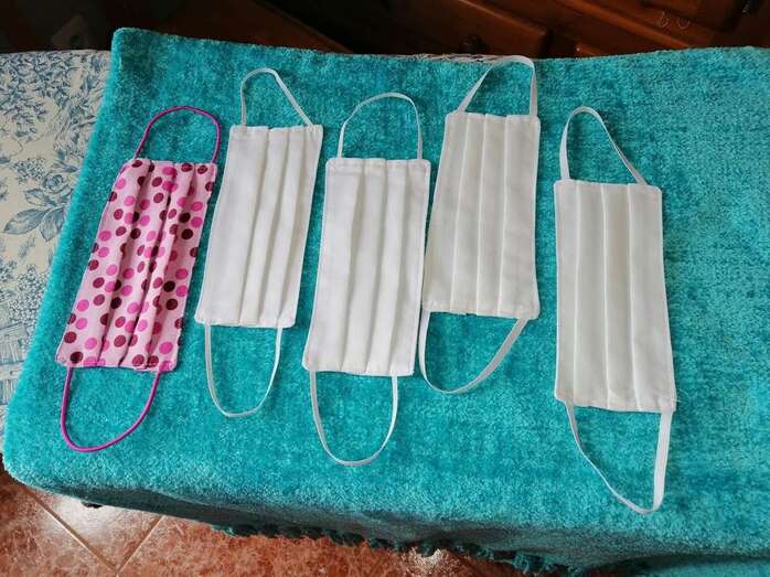 Mascarrillas fabricadas por Tita Rodríguez y Pilar Ortega (Foto TA) Mascarrillas fabricadas por Tita Rodríguez y Pilar Ortega (Foto TA)