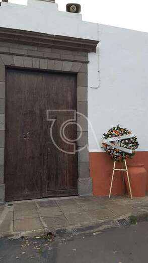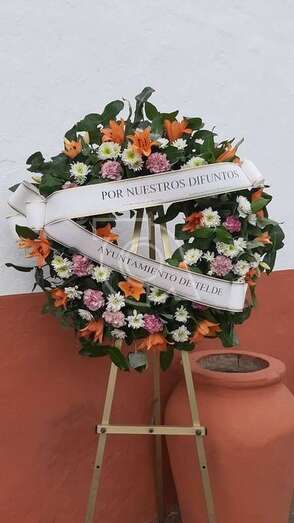 Telde.- Telde ha colocado esta mañana un caballete con una corona en las puertas principales de los camposantos de San Juan y San Gregorio en memoria de todos los finados que han sido enterrados en los últimos días y a los que sus familiares no han podido despedir por motivo de la contingencia sanitaria que ha obligado al cierre al público del tanatorio y cementerios municipales.