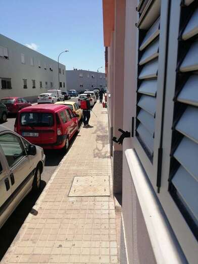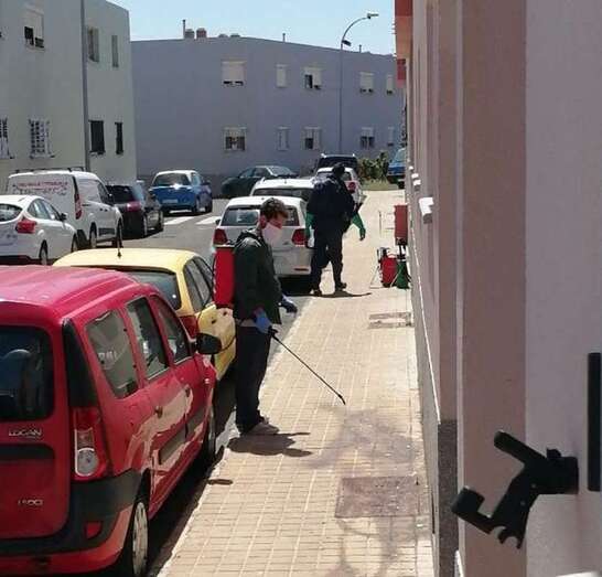 Telde.- La junta administradora de la comunidad de las viviendas sociales de El Caracol ha contratado los servicios de desinfección de las zonas comunes a una empresa especializada, que acometió esta mañana los trabajos.