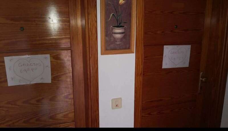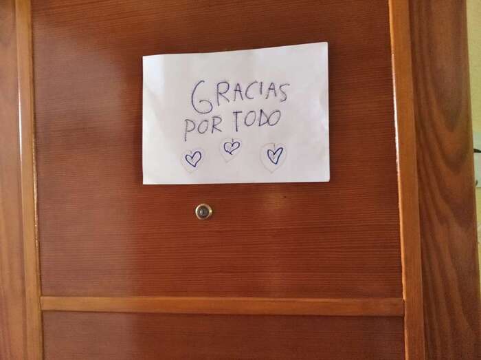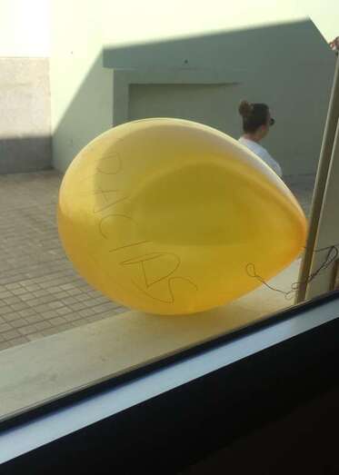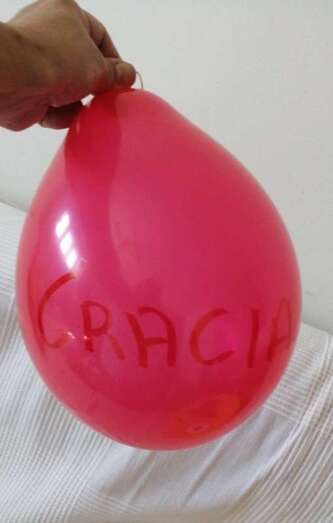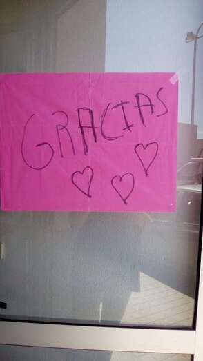 Los vecinos han aplaudido la iniciativa colocando en puertas y ventanas carteles y globos con la palabra Gracias.