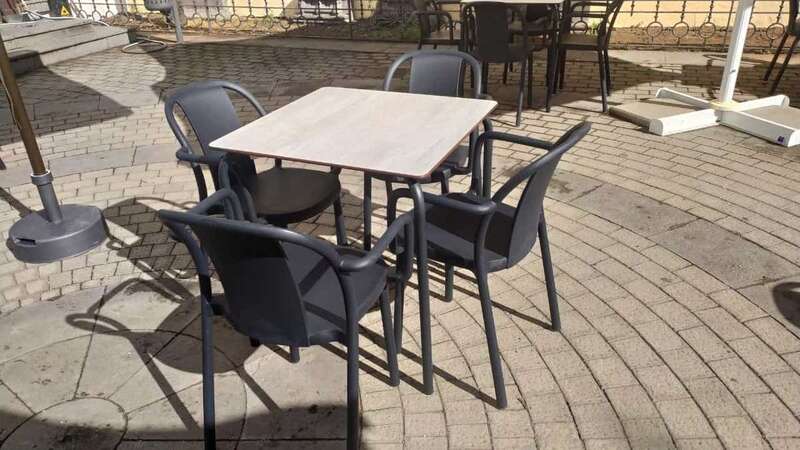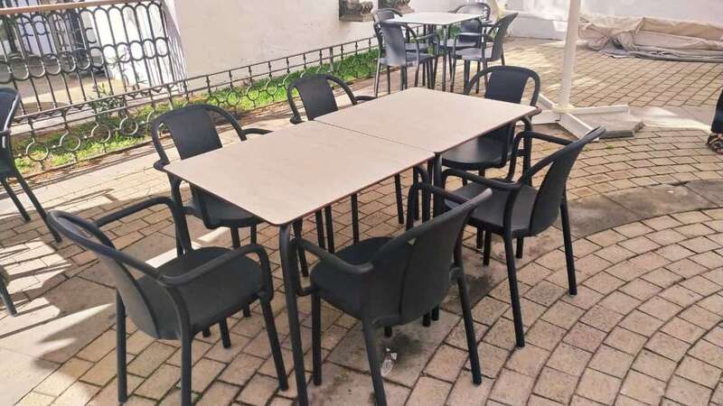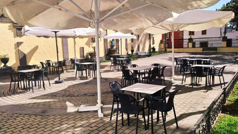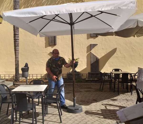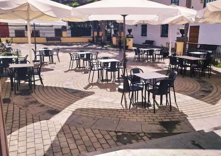 Telde.-La terraza de El Casino de Telde ha renovado estos días el mobiliario de mesas, sillas y sombrillas de este espacio que da al Rincón Plácido Fleitas.