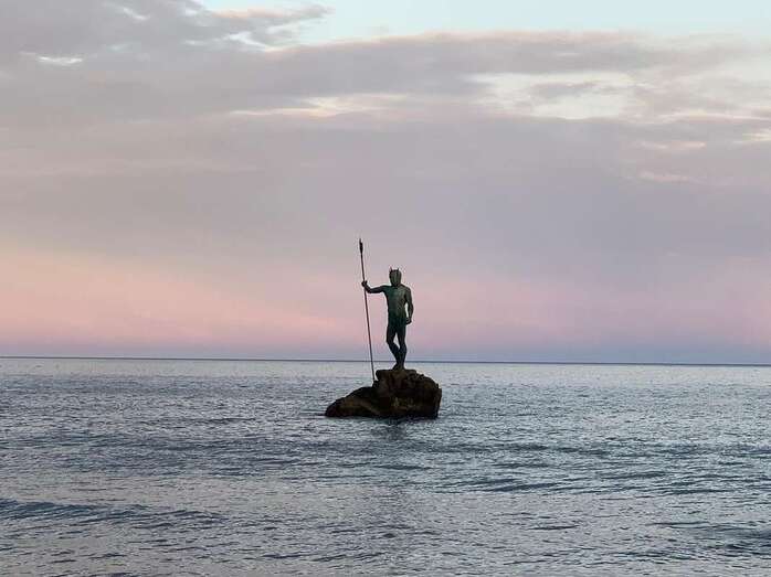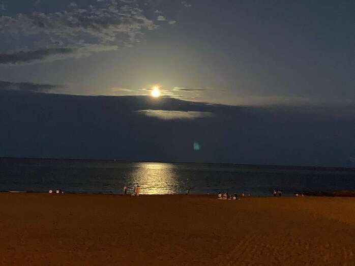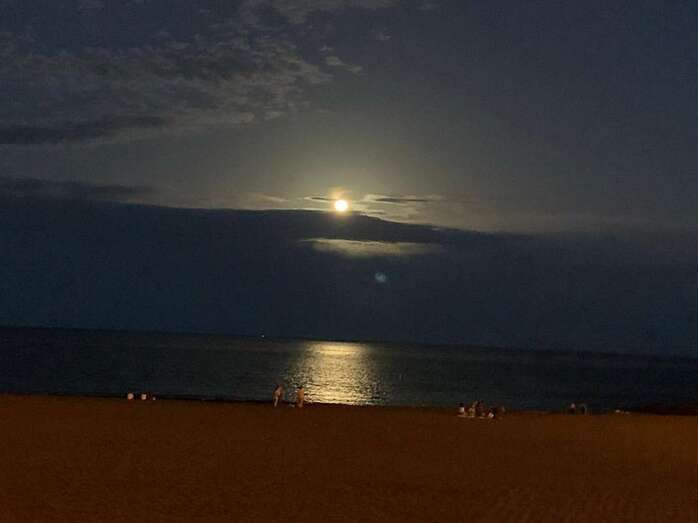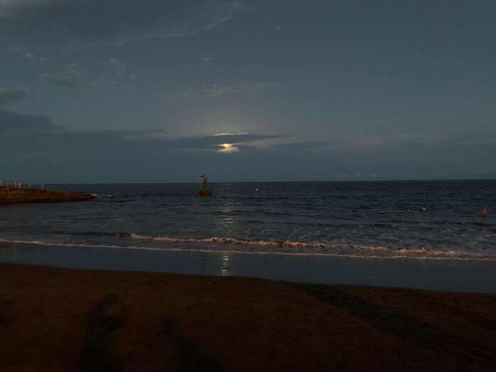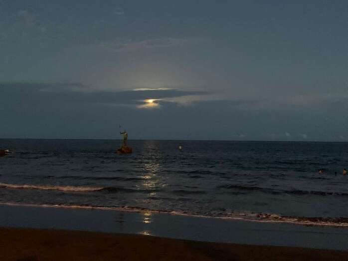 Telde.- Un grupo de fotógrafos de la Isla, unos profesionales y otros aficionados, se han dado cita esta noche en la playa de Melenara para captar la imagen de salida de la luna llena rosada entre las piernas de la escultura de Neptuno, obra en bronce del artista Luis Arencibia que se alza sobre el antiguo Puntón.