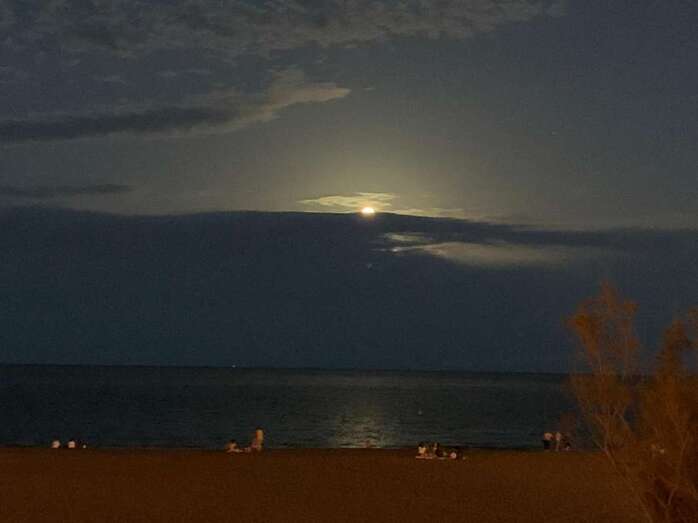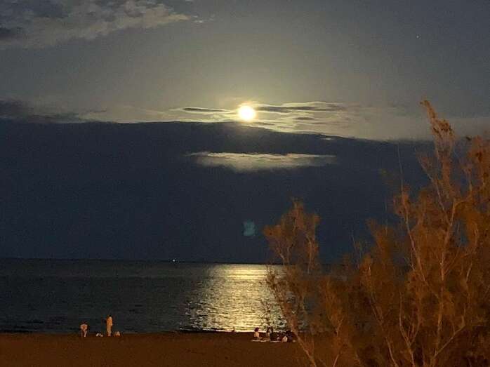 La Luna llena rosada se cuela entre las piernas de Neptuno