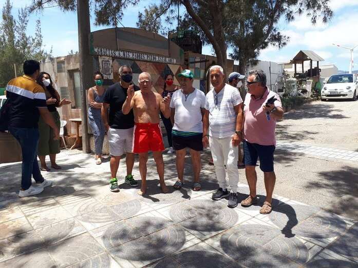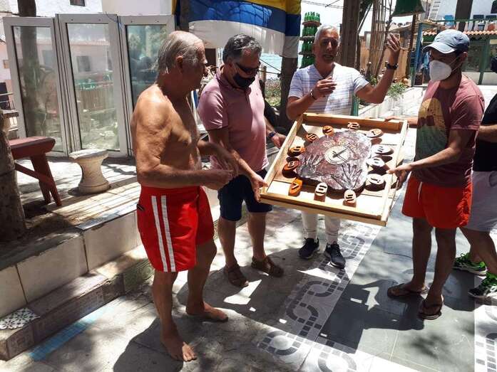 La iniciativa, que consistió en la entrega de un regalo, partió de la Asociación de Vecinos y Amigos del Cristo de Ojos de Garza y reunió en el acto de reconocimiento a un emocionado Peñita a un nutrido grupo de residentes en este hermoso rincón del litoral sur del municipio de Telde.