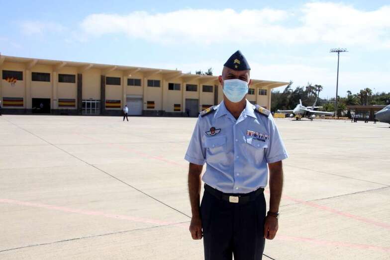El coronel Javier Caballero en el acto de este martes en la Base Aérea de Gando (Foto Jesús Ruiz Mesa) El coronel Javier Caballero en el acto de este martes en la Base Aérea de Gando (Foto Jesús Ruiz Mesa)