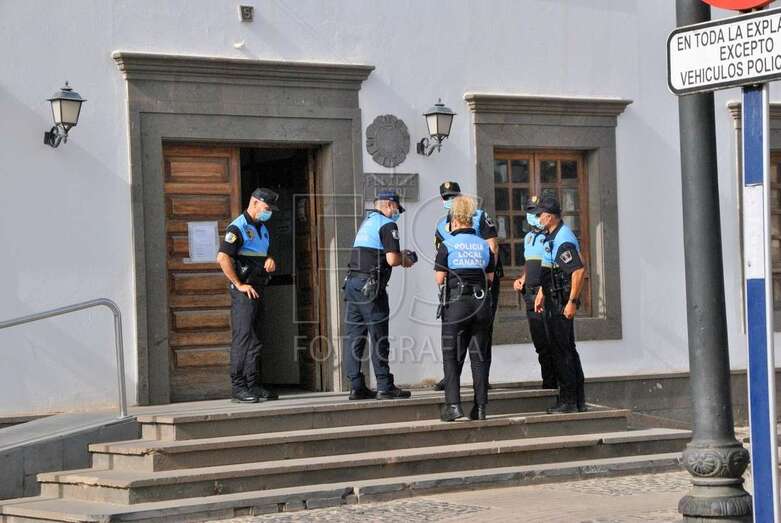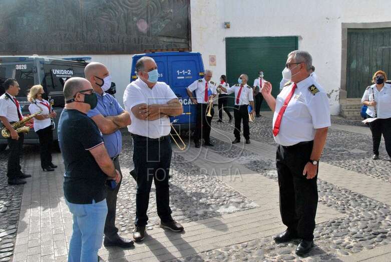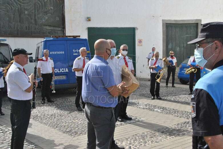 Bajo la batuta de José Martel y en presencia del concejal de Cultura, Juan Martel, y del edil de Seguridad, Agustín Arencibia, los componentes de la Banda de Telde se dirigieron esta mañana a las dependencias de la Policía Local, en la calle Inés Chemida.