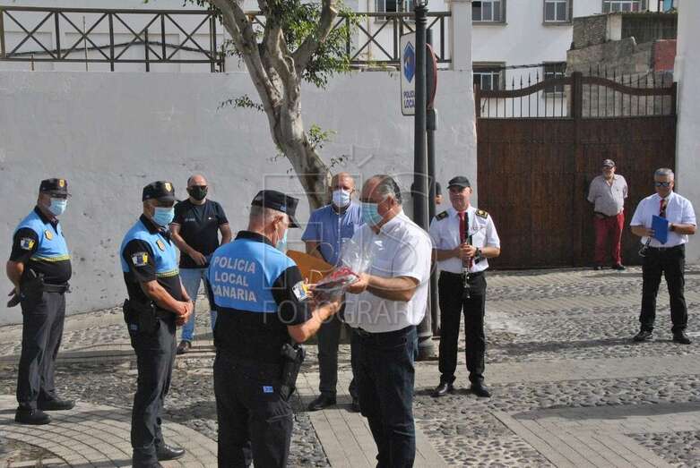 Poco después, se dirigieron a la Comisaría de la Policía Nacional de Telde, a cuyas puertas ofrecieron otro recital y también hicieron entrega de un presente en señal de agradecimiento. Además, a título particular entregaron un cuadro al comisario Jesús García Aller, que en unas semanas se jubilará.