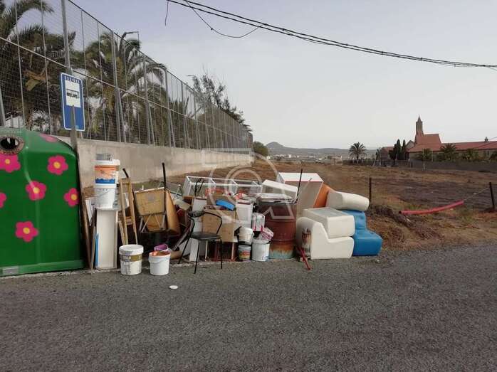 Telde.- El colectivo vecinal Camino de Rosiana Los Olivos ha denunciado la acumulación de desechos de obra en la puertga del Colegio Enrique de Ossó, sito en el sector poblacional de La Medianía de Telde.