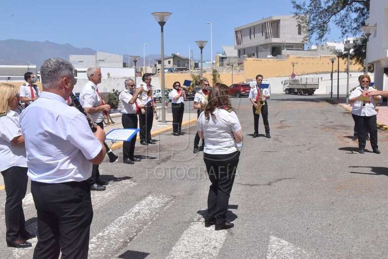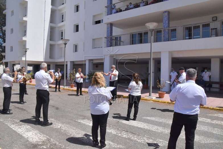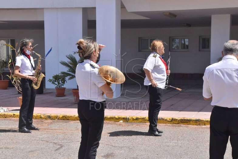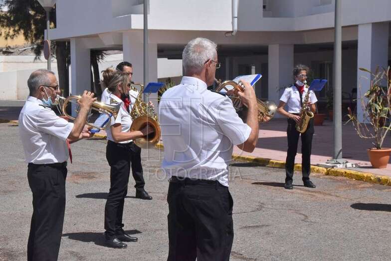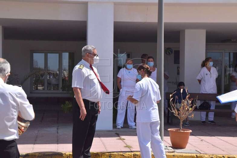Hasta allí se desplazó en la jornada de este miércoles la Banda Municipal, para rendir homenaje en forma de concierto por el trabajo que realizaron durante la pandemia.
