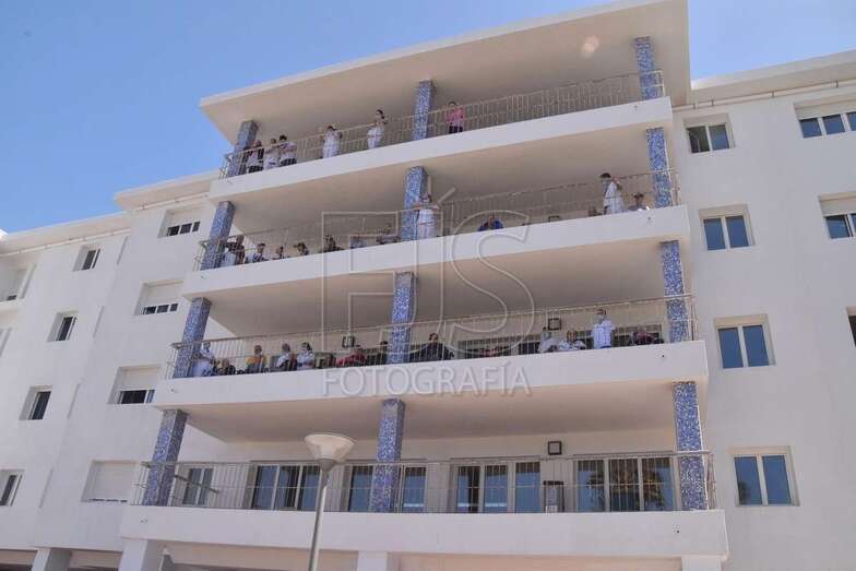 Un recital al aire libre, desde la entrada a las instalaciones, y que alegró la mañana tanto al personal como a los usuarios del centro, que lo siguieron entusiasmados desde las puertas del centro o también asomados en ventanas y balcones.
